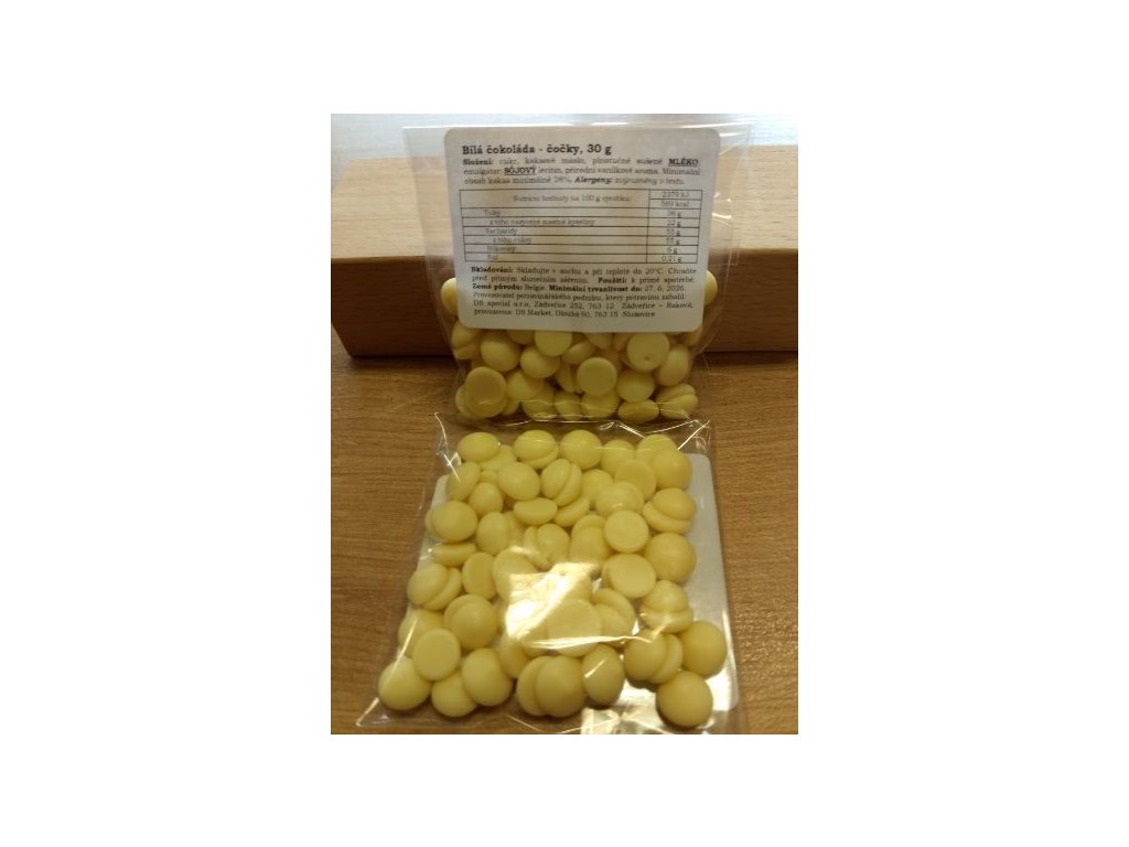 Složení: cukr, kakaové máslo, plnotučné sušené MLÉKO, emulgátor: SÓJOVÝ lecitin, přírodní vanilkové aroma.
