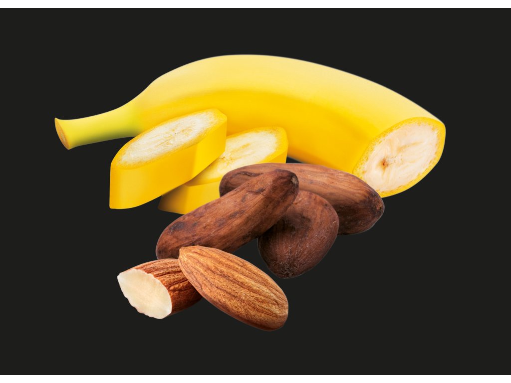 Složení: banány (40 %), voda, pražené kakaové boby (10 %), MANDLE (8%), sůl.
