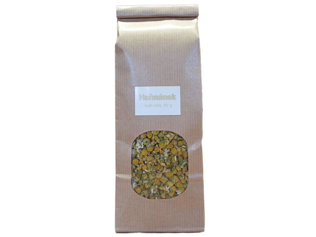 Sušené květy heřmánku v balení 60 g. Oblíbená tradiční bylina pro přípravu nálevu, inhalací, koupelí a obkladů. Vhodná pro chvíle klidu a domácí péči o citlivou pokožku.