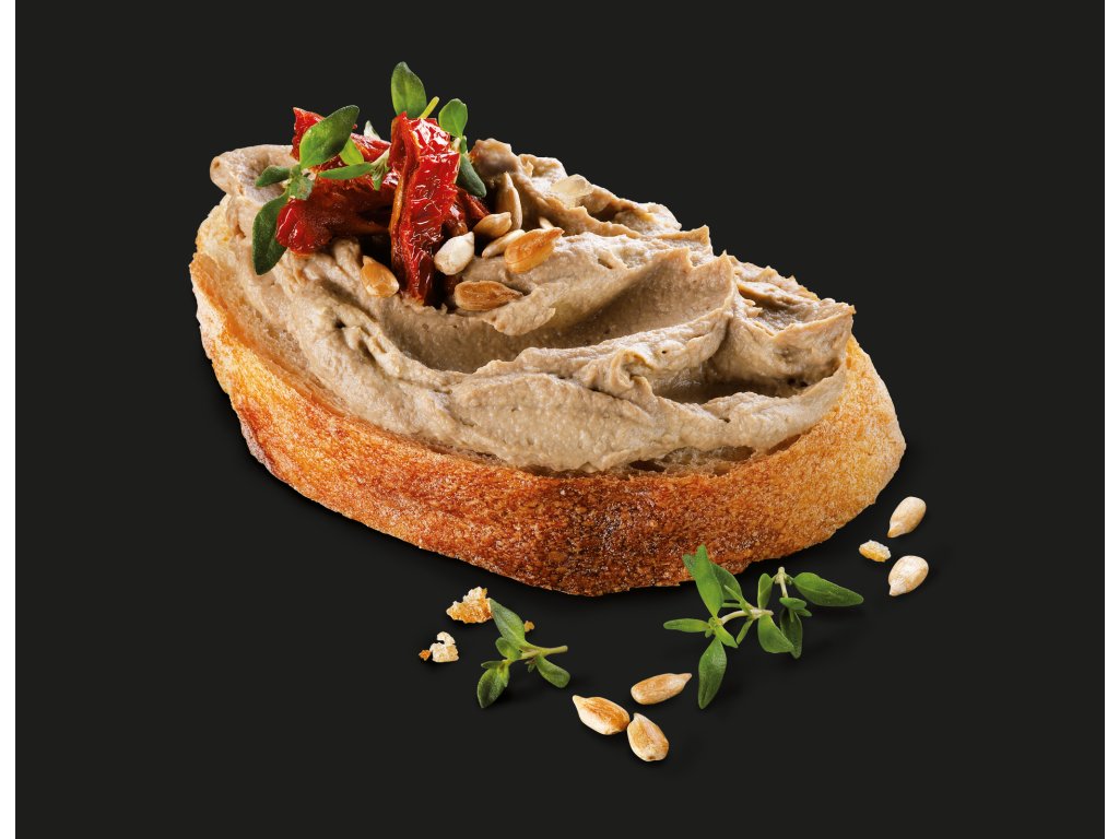 Sterilovaná homogenizovaná pasta z hovězího masa, husích jater a zeleniny k přímé konzumaci.
