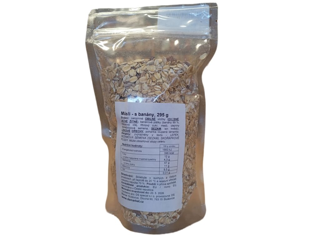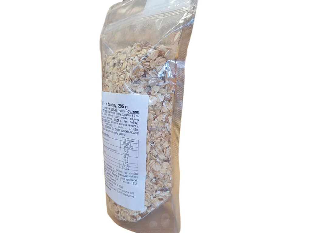 Müsli s banány 295 g – chutná snídaňová směs plná celozrnných vloček a banánu